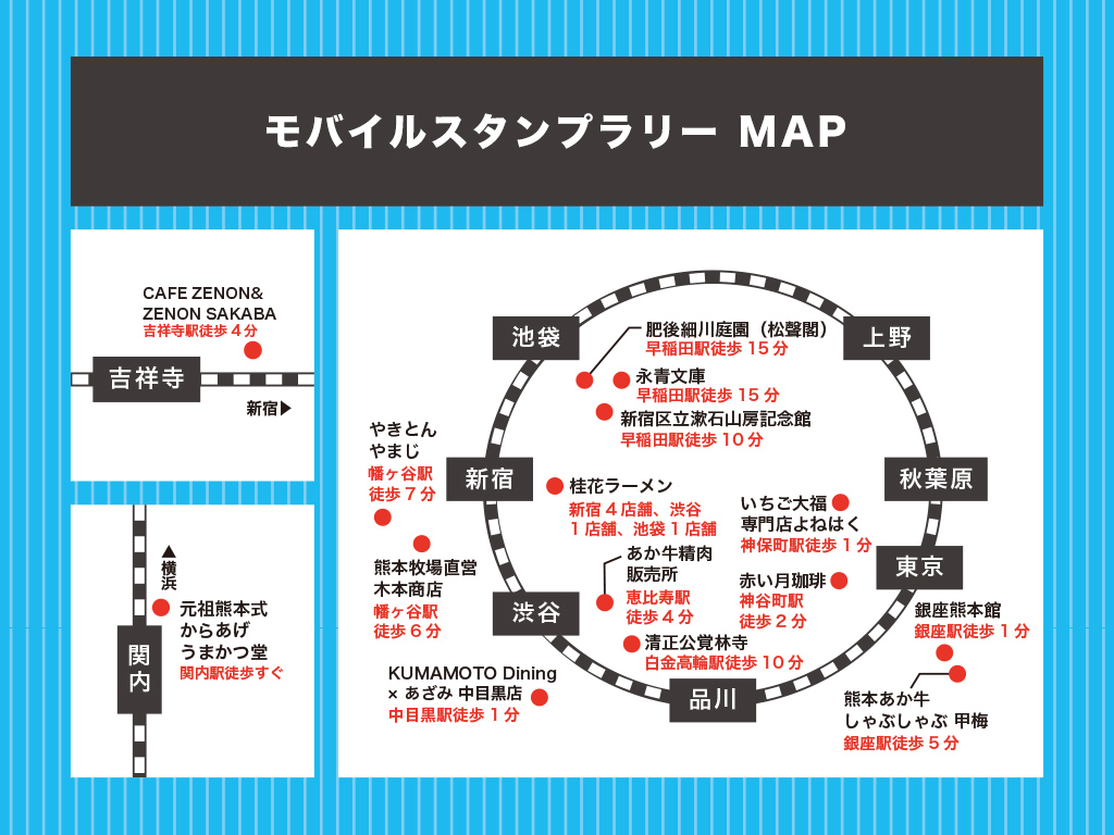 【※終了しました】首都圏で熊本ゆかりのスポットをめぐるモバイルスタンプラリー開催!楽しくまわって、食べて歩いて熊本を体感しよう
