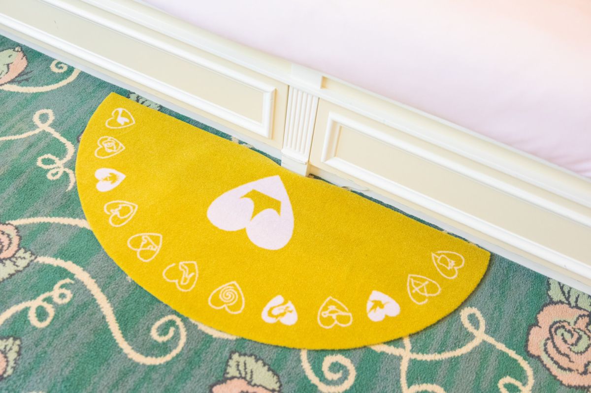 淡いピンクを基調としていて「大人なかわいらしさ」が第一印象。とはいえ、ディズニープリンセスたちのシルエットをデザインしたベッドスプレッドやトランドルベッドがあり、ディズニーらしさは満点。自分がプリンセスになった気分も味わえそう。