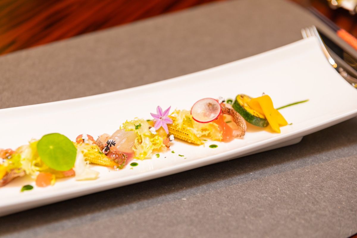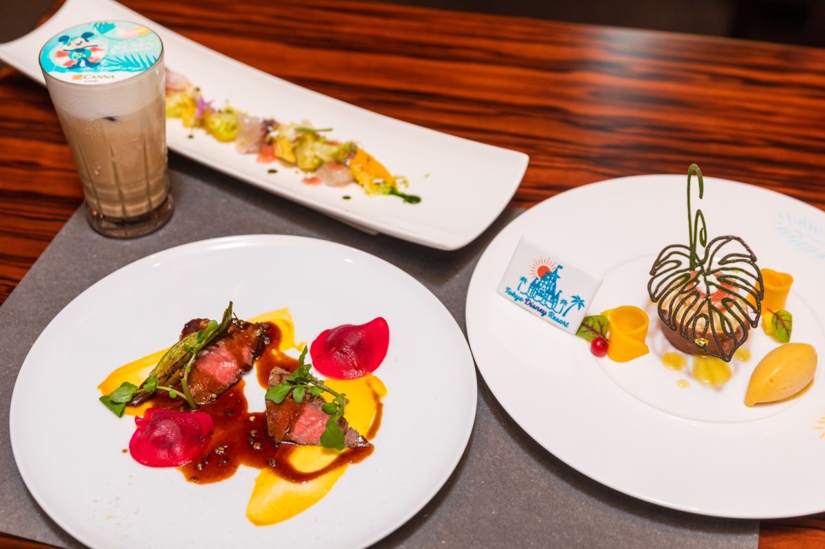 そんなカンナで「東京ディズニーランドホテル・サニーサマーダイニングスタイリッシュカンナ」1万4000円のコースメニューのなかから、前菜、メイン、デザートの3品を実食♪