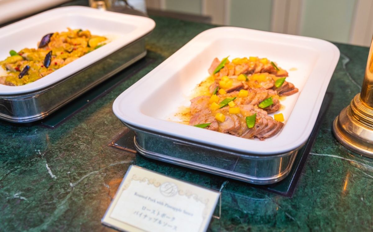 豚の肩ロースを低温でじっくり火を通していてやわらか。酸味と甘みが楽しめるパイナップルソースが美味。※ディナーブッフェ限定メニュー
