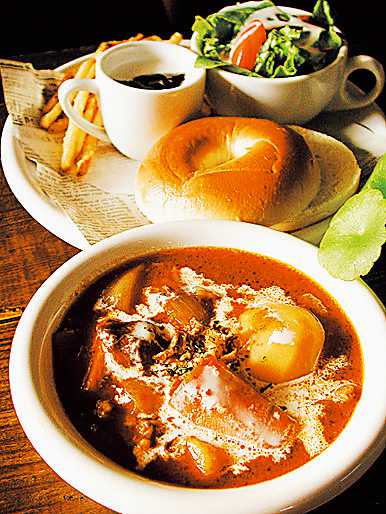 腹ぺこさんにおすすめなのがビーフシチュープレート1200円。じっくり煮込んだ牛すね肉がとろけるシチューはボリューム満点。サラダ、パン、ドリンク付きで大満足です。