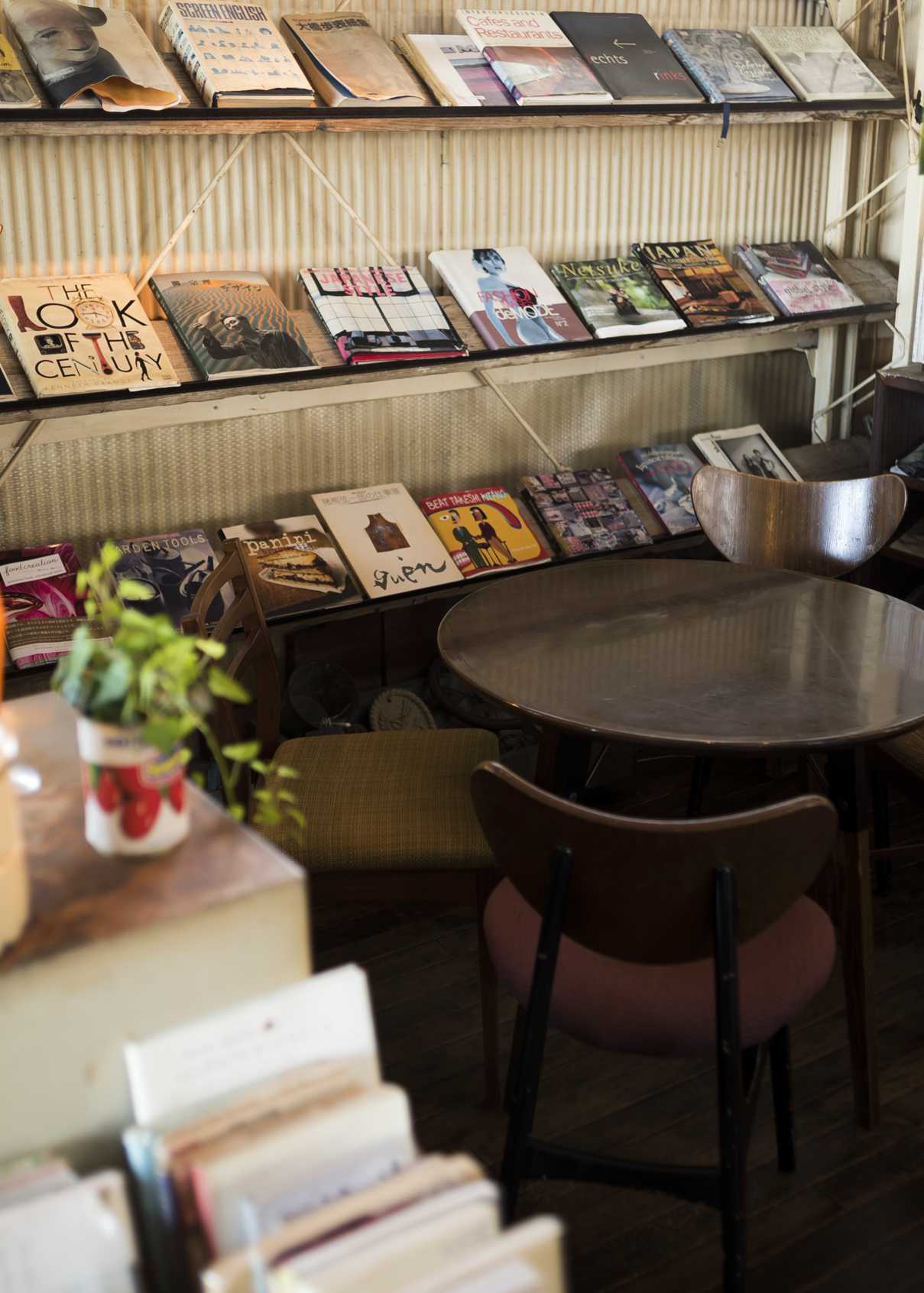 テーブルのそばには、デザインやインテリアなどさまざまなジャンルの本も。好きな席で好きな本を読めば、常連気分でゆったりくつろげます。その居心地のよさに惚れ込んだ、“umieのファン”というアーティストも多いのだとか。