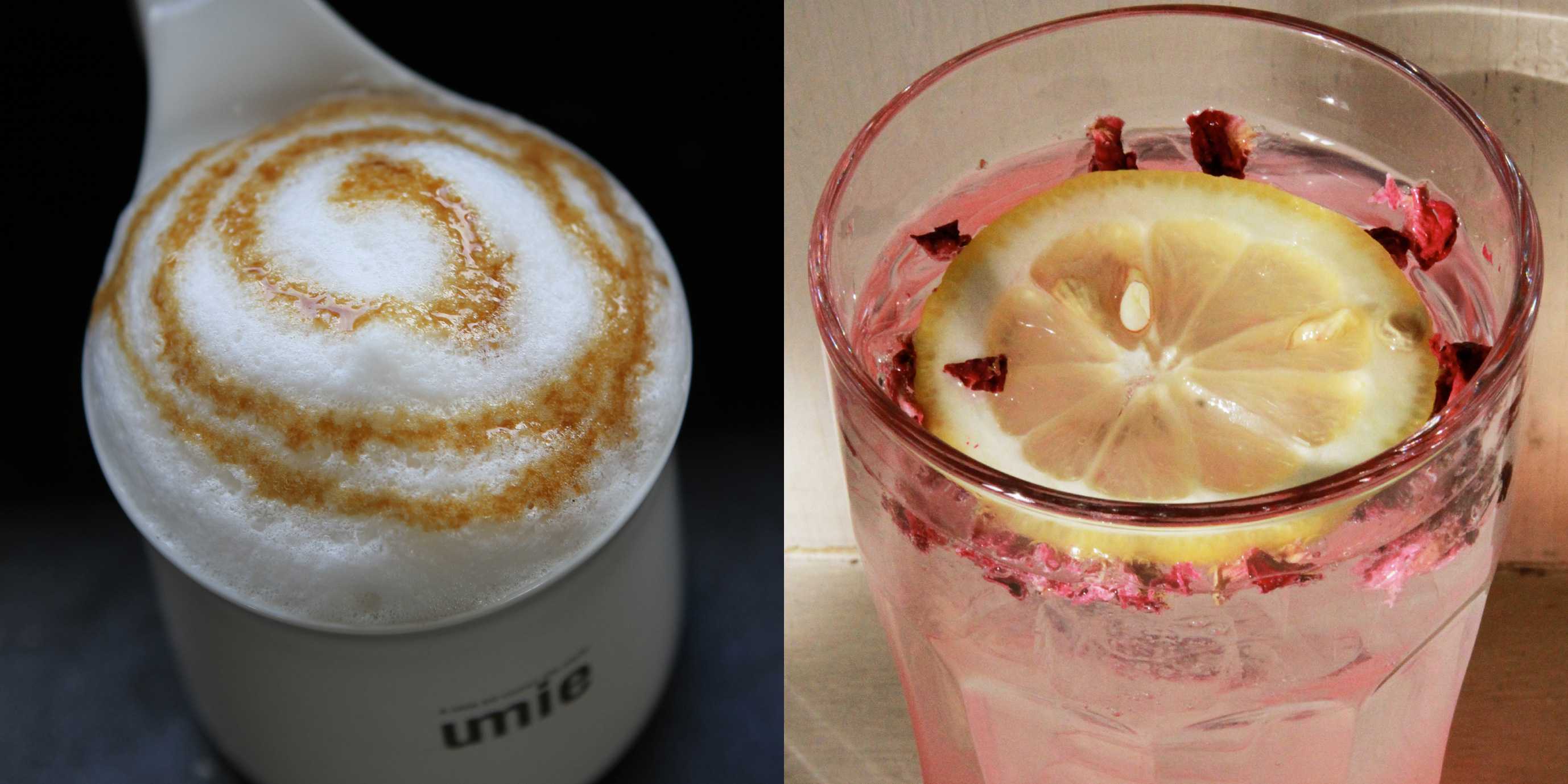 オリジナルマグにこんもりと注がれたキャラメルチーノ580円は、ほのかな甘みとキャラメルの香りに癒されます。インスタ映えしそうなピンクはちみつスカッシュ600円は、ドライローズが浮かぶ淡いピンク色が女子の心をくすぐります。