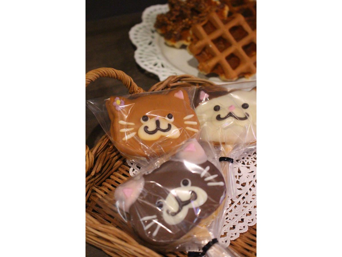 「ねこのチョコワッフル」はスティックタイプなので、持ちやすく食べやすい、そして写真が撮りやすいのもポイント!スタッフが毎日手作りしているので、どの色や柄の子がいるかは行ってみてのお楽しみ。同じタイプの子でも、一つ一つ表情が違うそうですよ。