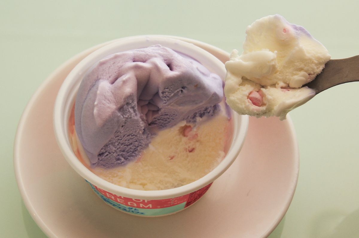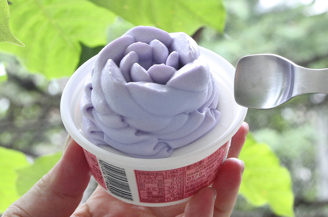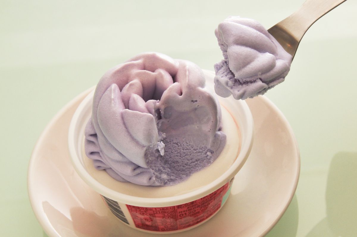 2022年6月28日と7月5日に、ローソンUchi CaféとMOIC(ミュージアム オブ アイスクリーム)がコラボした新作アイスが2種ずつ登場。そのなかの1種は、ブルーともパープルともいえない、不思議な色の花形アイスで、かわいくもあり、妖艶でもあり、思わず写真を撮りたくなります。さて、どんな味なのでしょう?