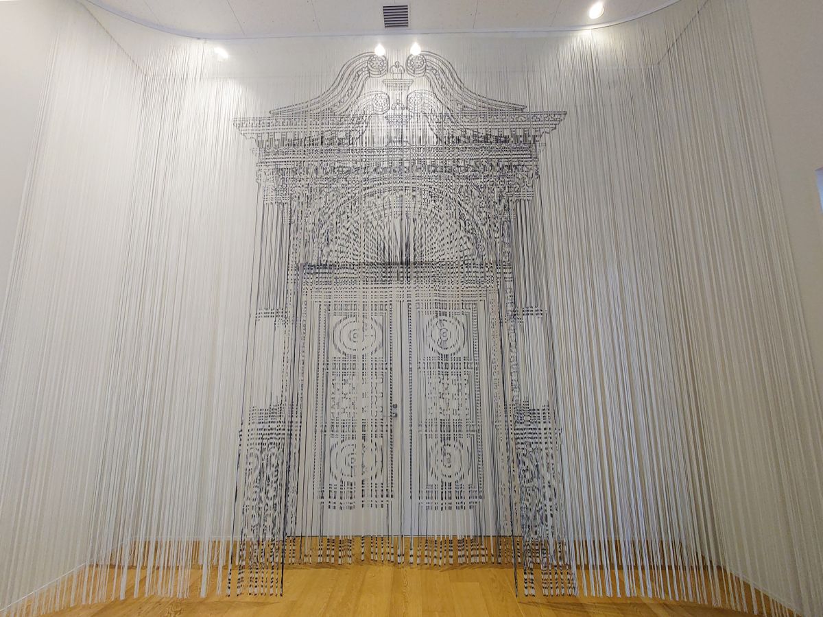 原作の第2部で登場するちびうさの「時空の扉」があしらわれたストリングカーテンをくぐって、展示の世界へ。まさに時空を超えて『セーラームーン』の世界へ飛び込みます!
