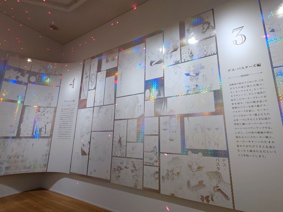 少女マンガ雑誌『なかよし』で連載された1~5部までの名場面や名台詞を、ホログラムで壁一面に再現。角度によってきらめきが変化する『セーラームーン』らしい世界観で、連載当時の記憶をきらびやかに思い出させてくれます。アニメ世代には新鮮なコーナーです。