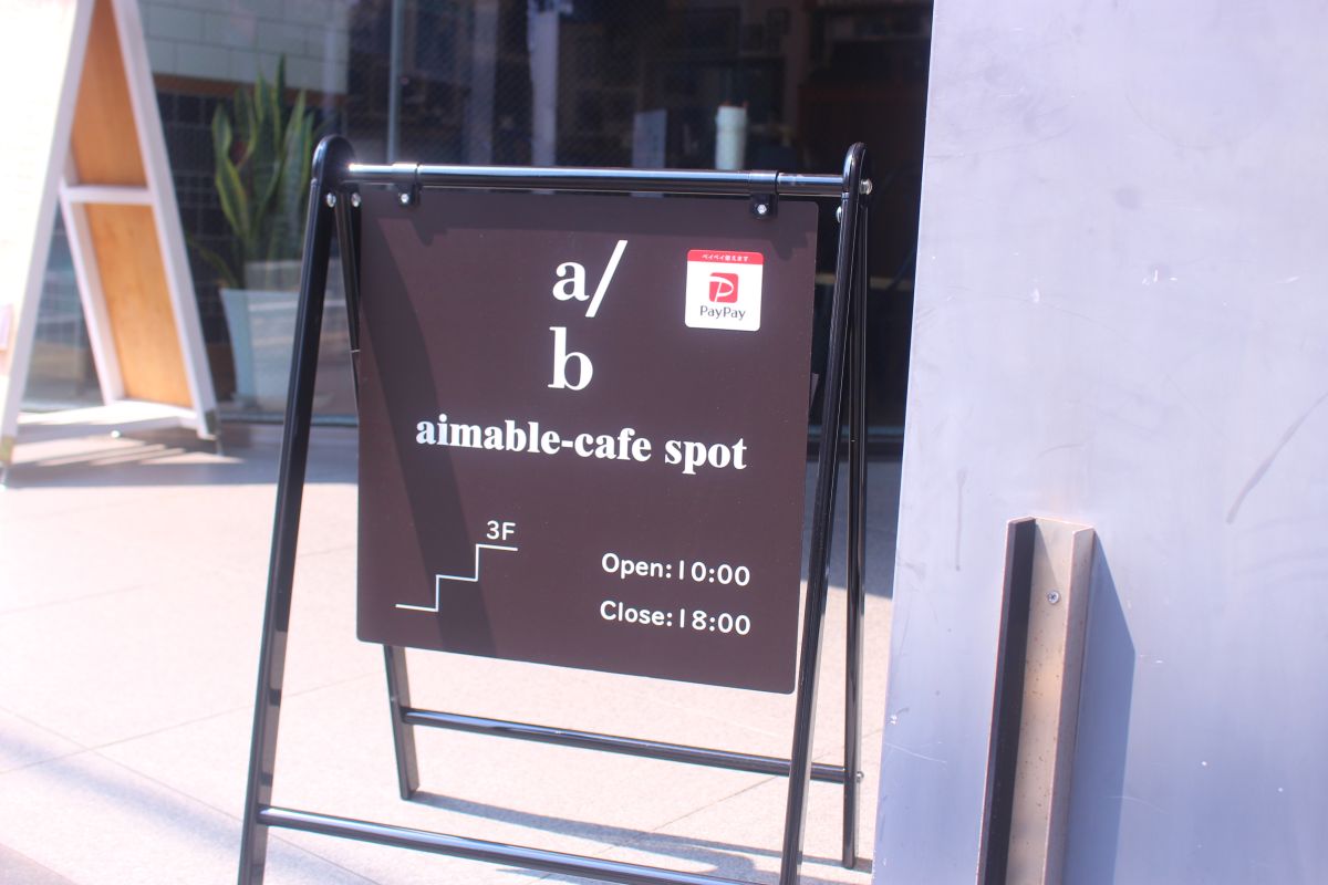 2022年4月にオープンした「aimable-cafe(えまぶーる かふぇ)」。本川越駅から徒歩3分ほどという好アクセスにありながら、ビルの3階にあるため静かな環境で過ごせるのが魅力です。来店時はこちらの看板を目印に。