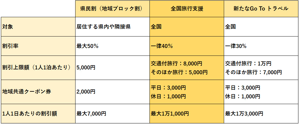 Go Toトラベルキャンペーン・県民割(地域ブロック割)との違いは?