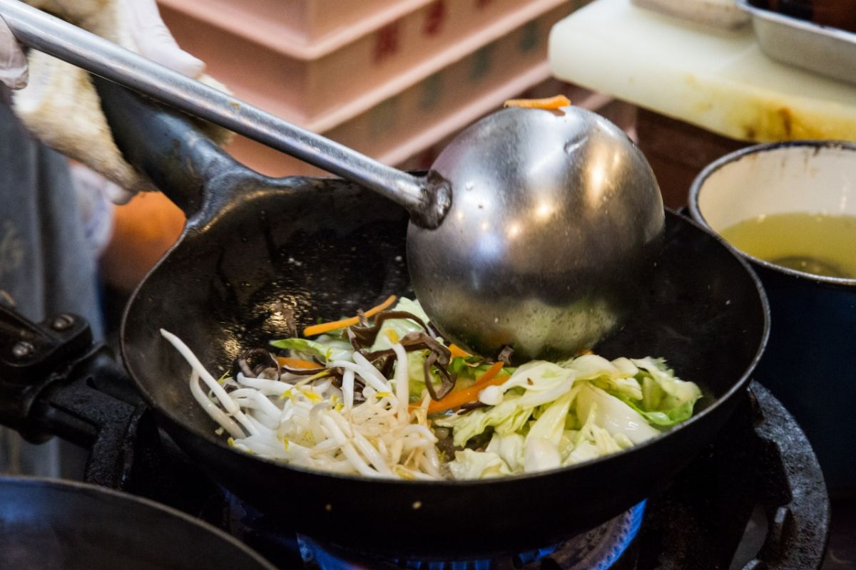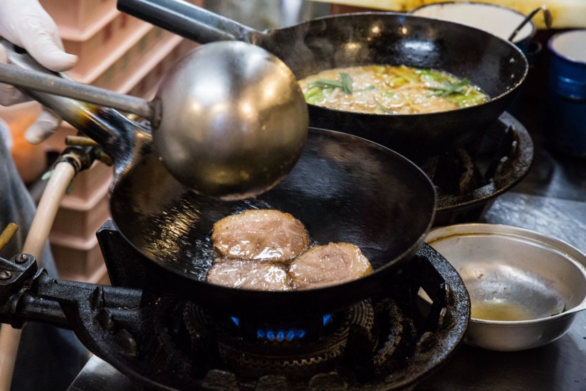 まずは最初にたっぷりの野菜をひき肉とともにラードで炒め、シャキシャキの食感は残したまま香ばしさをプラス。