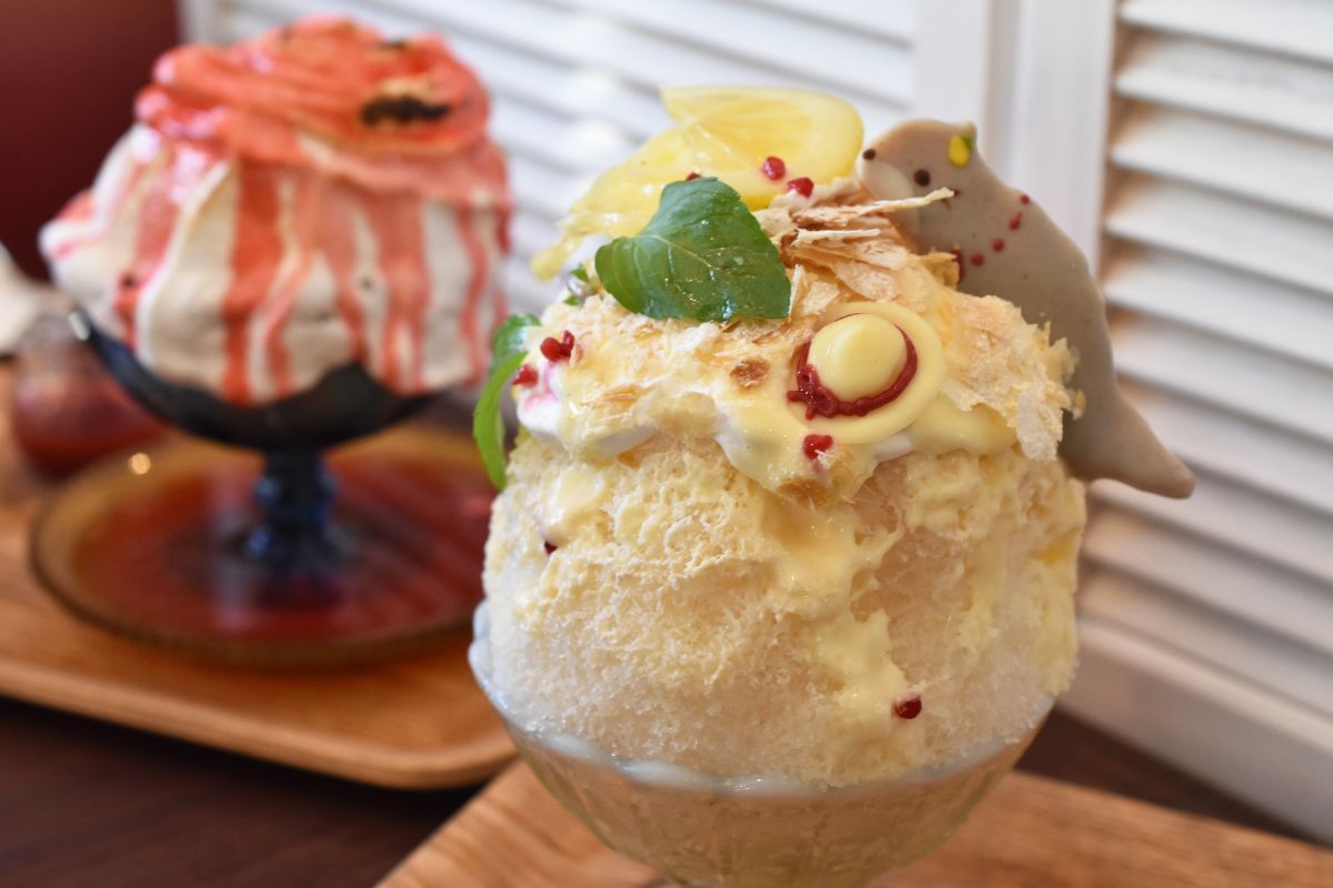 こちらの「カワウソぼうやのもぎたてレモンパイ」は、国産レモンのはちみつレモンシロップにサクサクパイ、甘酸っぱいレモンゼリーや自家製のカスタードをトッピングした一品。まるでケーキのようなかき氷です!国産レモンを使用するほか、丁寧な工程を踏んで苦みを抑えているので、レモンの旨味までをしっかりと感じられます。