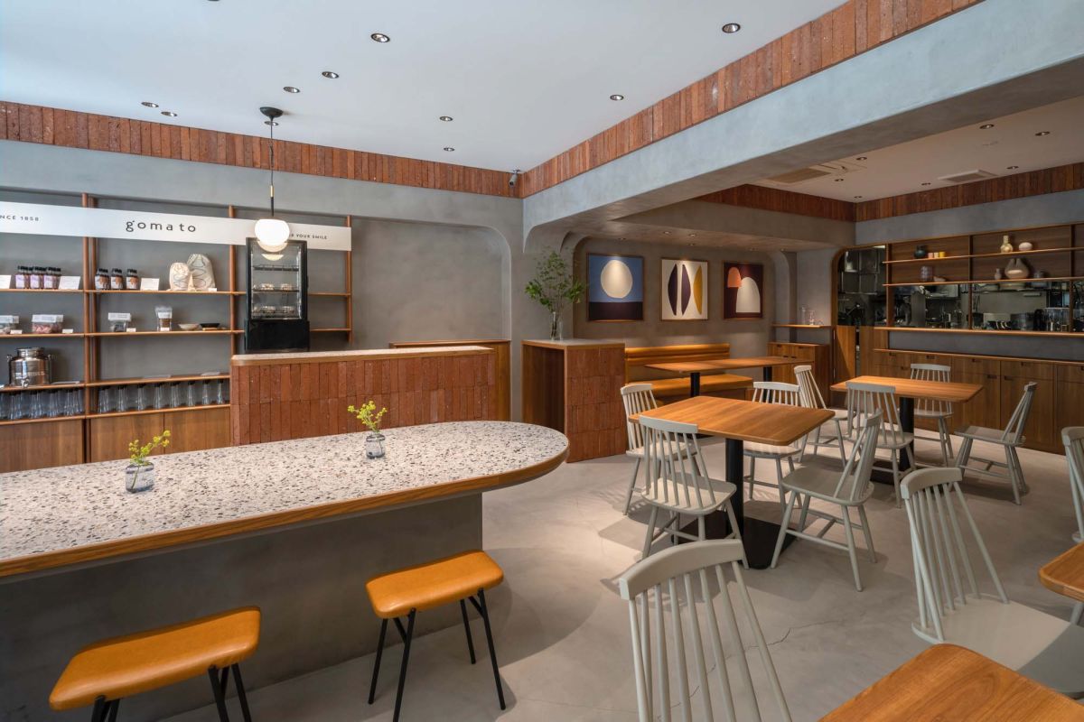 自由が丘駅から5分ほど歩くと、柔らかい色づかいの落ち着いたカフェ「goma to」が現れます。