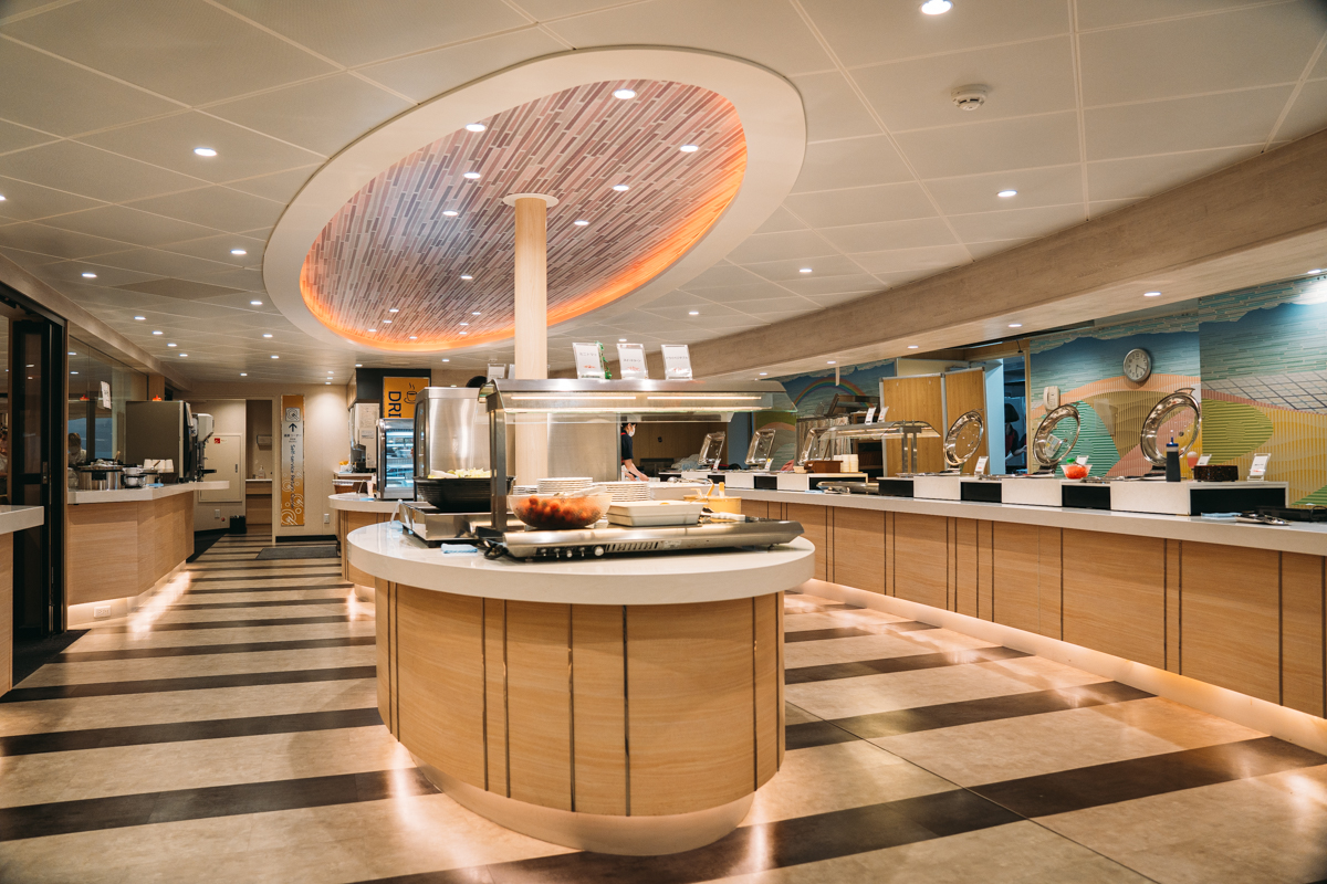 旅の楽しみといえばやっぱり食事。「さんふらわあ」では、モーニングとディナーはビュッフェ形式のレストランでいただけて、夕食時は18時30分から入店可能。北海道産や旬の食材を生かした料理の数々がとっても豪華で、「これが食べ放題なんて!」と驚きでした。サラダや野菜のデリもたくさんあるので、夜は少し控えている……という方でも罪悪感を感じないメニューです♪