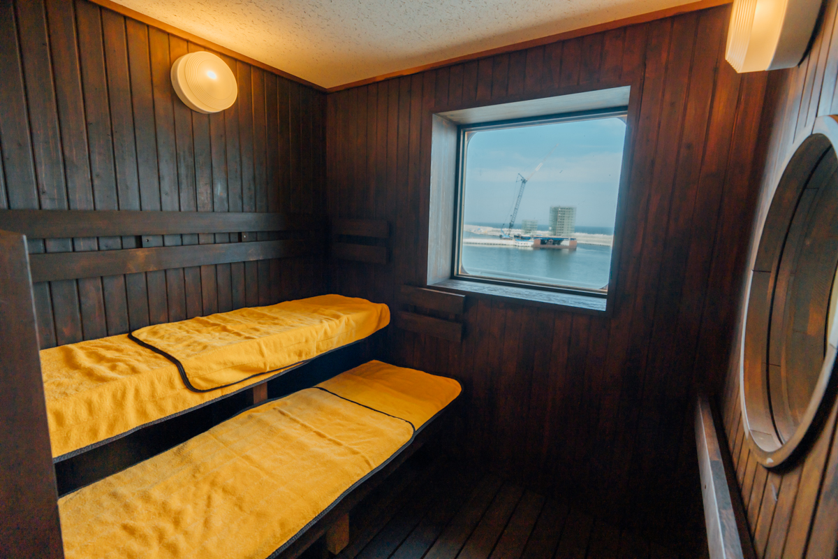 サウナから見える海をパシャリ。ゆっくりと動く波を見ながらサウナを楽しんでいると、とてもおだやかな気持ちに。大浴場には水風呂や外気浴ができる設備はありませんが、サウナ横にシャワーが設置されていたので、汗も日頃の疲れも洗い流せた気がします♪