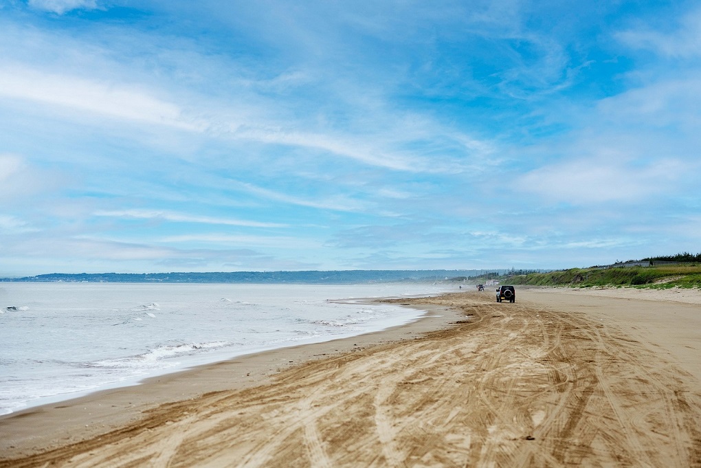 能登半島の中腹部に位置する千里浜なぎさドライブウェイは、南は宝達志水町今浜(今浜口)から、北は羽咋市千里浜町(千里浜北口)までの南北を縦断する砂浜で、車やバイク、バスで走行することができる人気のスポットです。