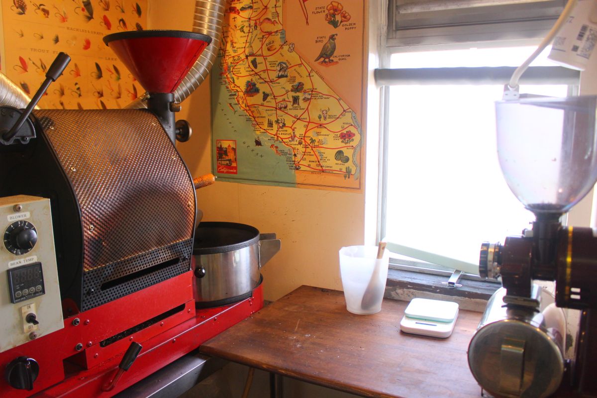 店舗の一角には焙煎室が設けられており、中には使い込んだ焙煎機が。料理やスイーツはもちろん、コーヒーも移転前のお店の味を楽しめます。