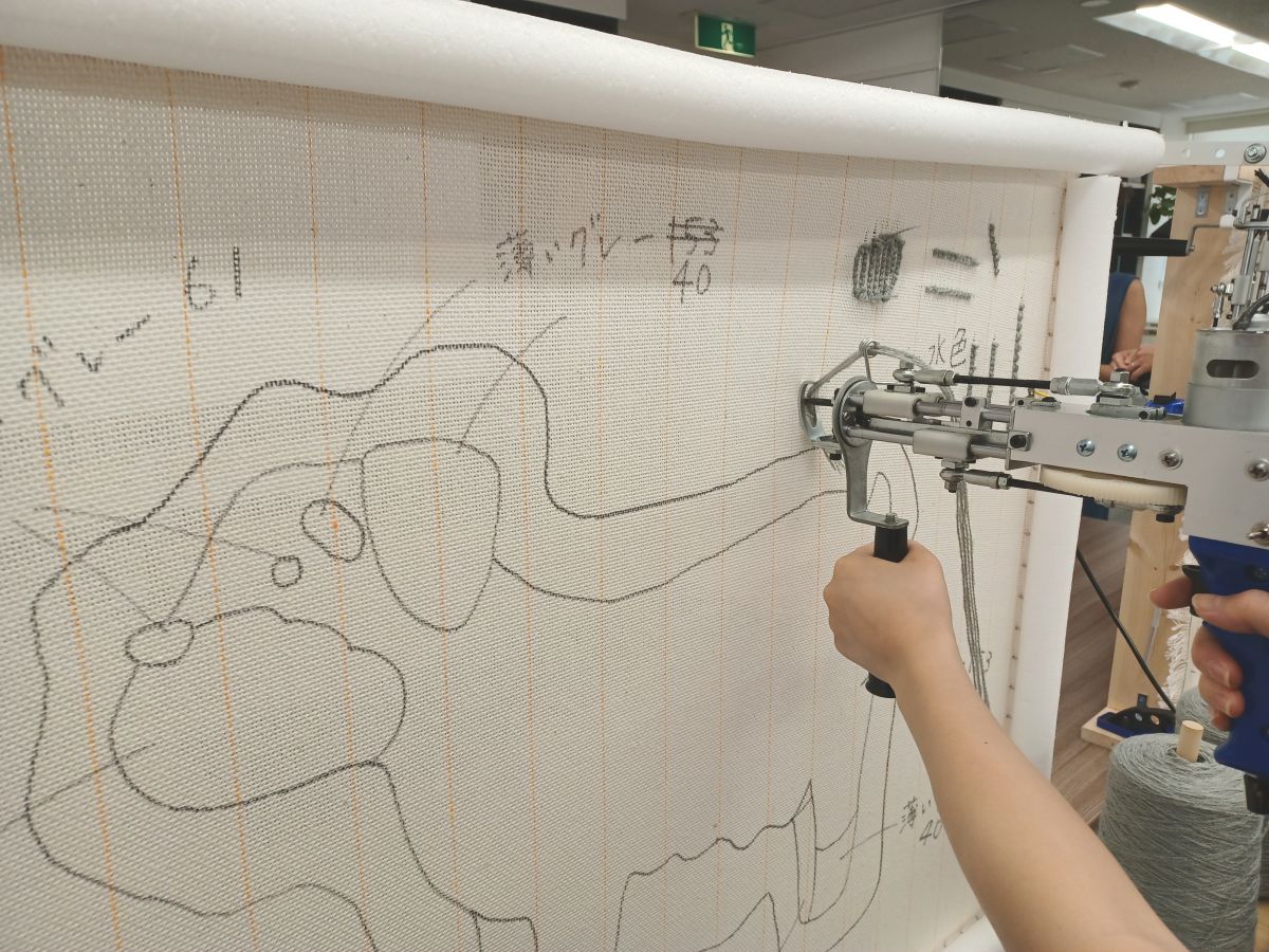 この線をもとタフティングガンで打っていくので、とても大事な工程です。