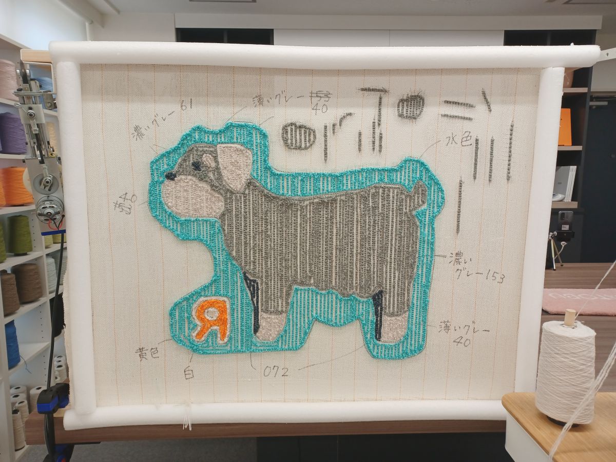 デザインは、事前にLINEでお店に提出し、ラグにできるかどうかを丁寧に確認してもらえるので安心。今回は、愛犬の写真を元に簡単なイラストをラグにしてみました♪