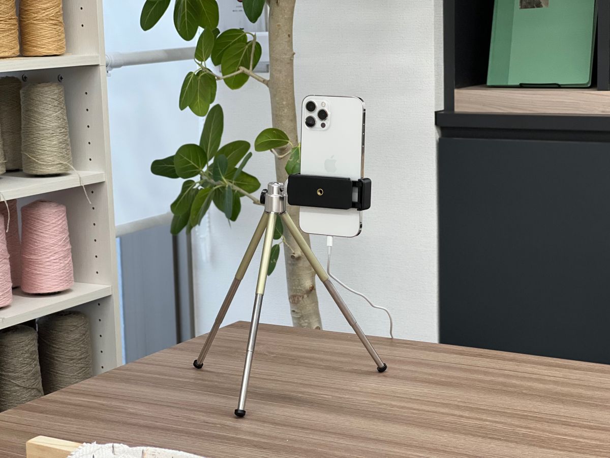 また、充電器と三脚を貸してもらえるので、作品ができあがるまでを自分のスマホでタイムラプスに残すこともできますよ。