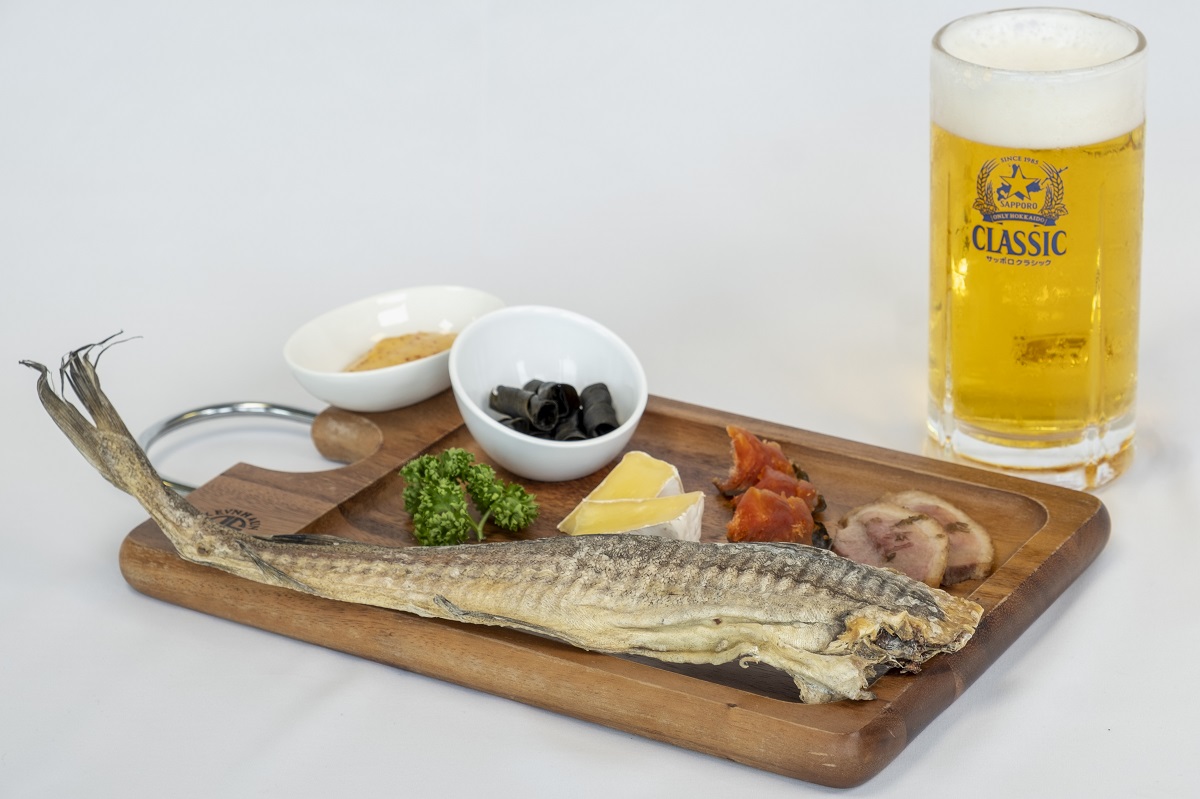 「1854 HOKODATE」ではおつまみプロジェクトの商品を使ったコラボメニューを2022年8月1日(月)~10月31日(月)の期間限定で販売。こちらのセットにプラス500円で、「SORACHI1984 」または「サッポロ クラシック」のどちらかのビールを付けることも可能。さらにプラス100円すると函館の地ビール「はこだて ビール五稜の星」に変更も可能です。