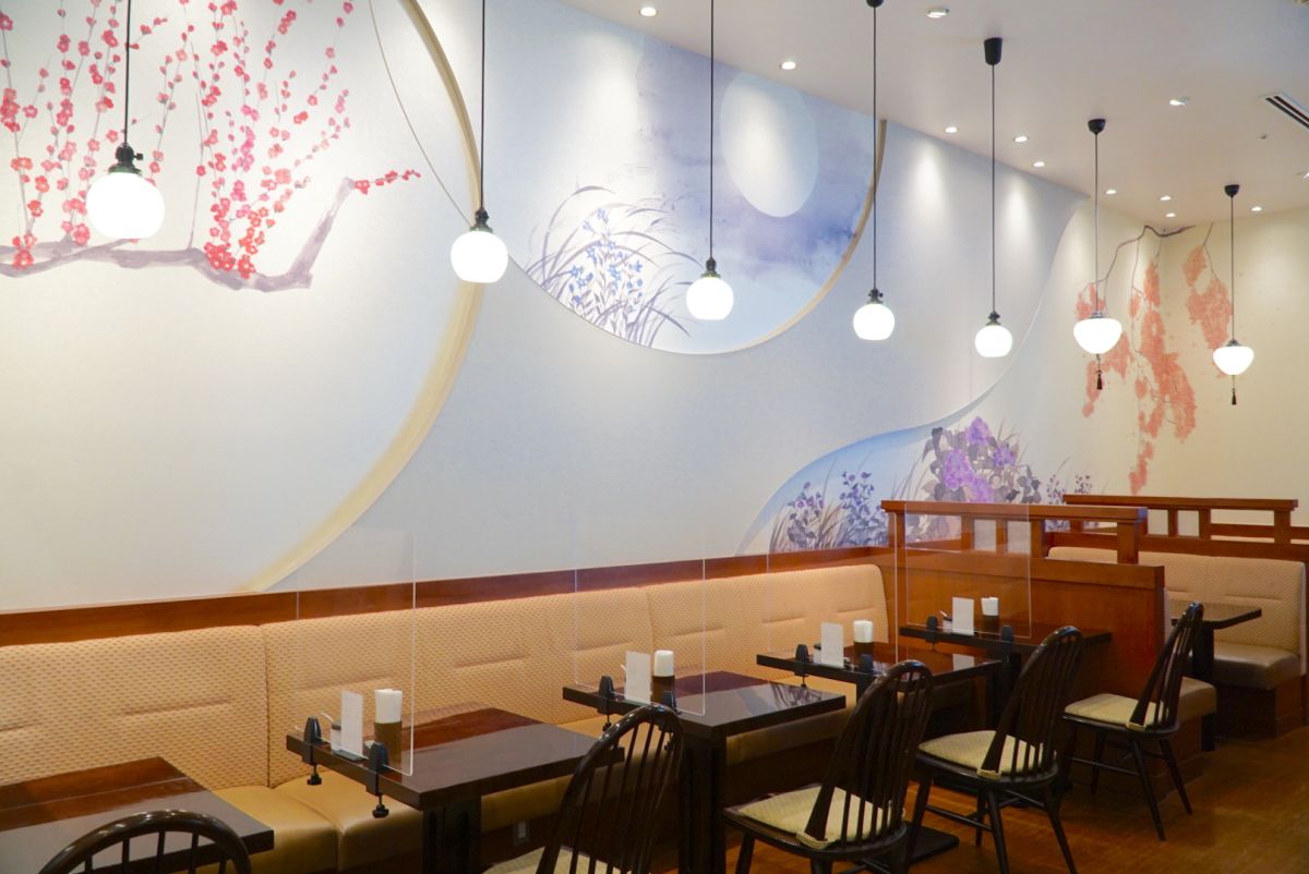 日本の四季を感じさせる壁紙など、日本らしい優美さが店内のあちこちに。ゆったり落ち着ける和空間でのカフェタイムは、おしゃべりも弾みそう。