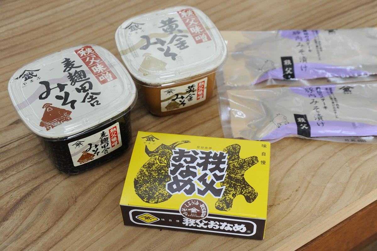 秩父味噌の看板商品は、「麦麹田舎みそ」500g454円~。色が濃いのは発酵熟成をさせているからで、アミノ酸が豊富に含まれている証拠です。1年かけて寝かせているので、旨味もたっぷり。米麹で作る「黄金みそ」500g653円~と合わせて味噌汁にすると味に深みが増して、おいしさもアップします。