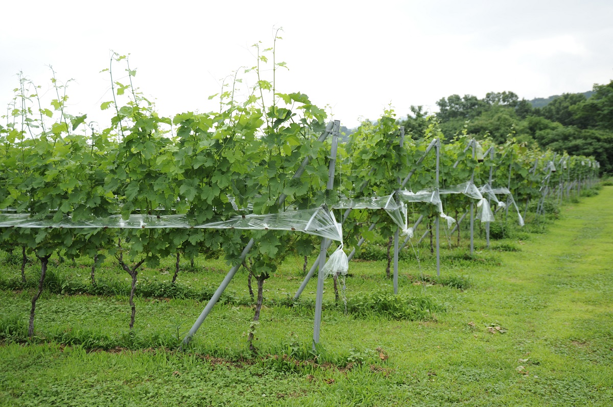 秩父市の旧地名である「兎田(うさぎだ)」エリアは、市街地が雨でもここでは降らないというほど、雨量が少なくブドウ栽培に適している地域。「兎田ワイナリー」では約2haの農地に約6600本ものブドウの木を栽培し、ワインを造っています。栽培しているのは、シャルドネやメルロー、マスカット・ベーリーAなど。自家農園のブドウに加え、契約農家のブドウを使い年間約4万本のワインを醸造しています。