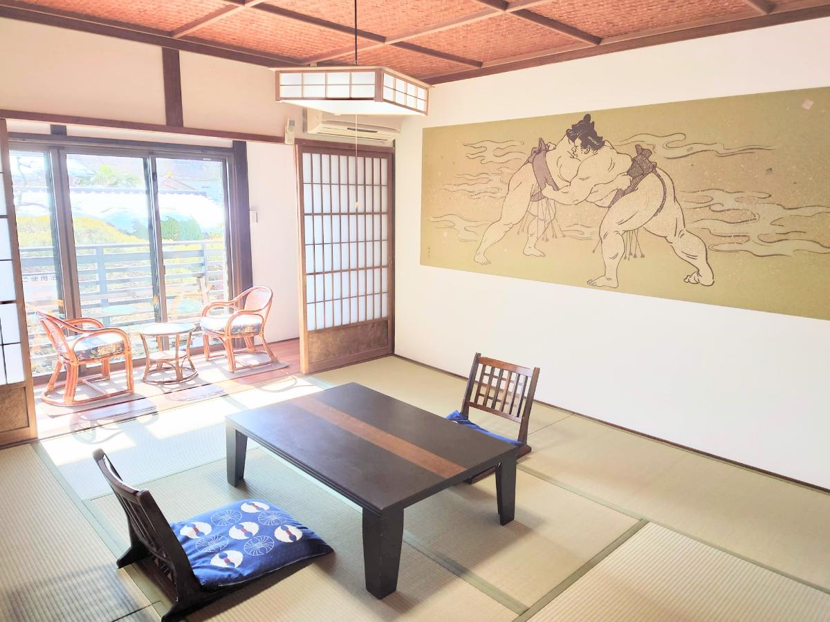 「二百年の農家屋敷 宮本家」には、農家屋敷の歴史を伝える母屋と別邸があり、客室が母屋に3室、別邸に4室の計7室のみといった贅沢な造りになっています。こちらの写真は母屋2階にある元力士当主考案のコンセプトルーム「力士の間」。和室6畳+8畳+寝室という広々とした部屋で、屋敷の主人になったような気分で過ごせます。母屋は代々受け継がれてきた昔ながらの屋敷が改築されたもので、200年超の歴史がある農家屋敷らしい雰囲気に心が落ち着きます。