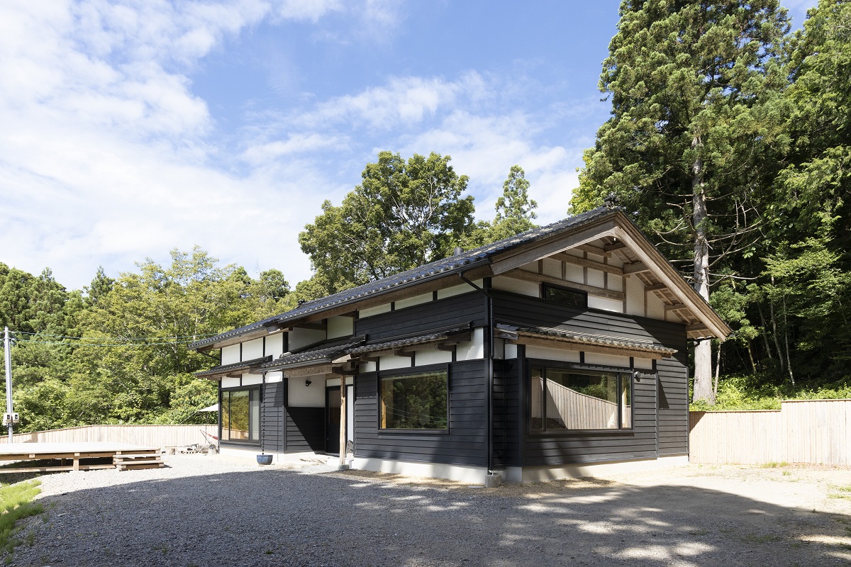 七尾市大呑地域は、深い森に覆われる丘陵地に挟まれた、熊淵川沿いに広がるエリア。まさに能登の里山里海らしい景色が広がる場所です。集落は山あいと海沿いに分かれ、「大呑ビレッジ 遊心庵」は山側にあります。宿の受付は、集落の中心にある南大呑郵便局横の「大呑ハウス」で。手続きを終えたら350mほど離れた山林の中にある一棟貸しの宿「大呑ビレッジ 遊心庵」へ向かいます。素敵な旅の始まりにワクワクしますね。