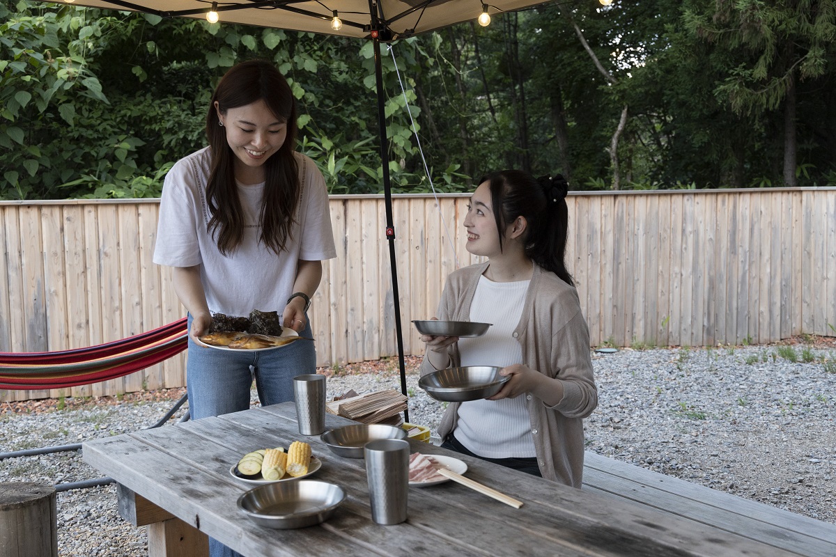 散策から戻ってきたら夕食の時間。夕食は庭でのバーベキューがおすすめです。こちらの宿ではバーベキューセットが無料で借りられます。食材は宿に到着するまでの間に、七尾市街地で購入しましょう。地元産の能登牛や能登豚、朝採れ野菜はもちろんですが、ここのバーベキューでこそ味わいたいのは、能登近海の幸。種類豊富な魚はもちろん、夏ならサザエ、冬なら能登カキもお忘れなく。
