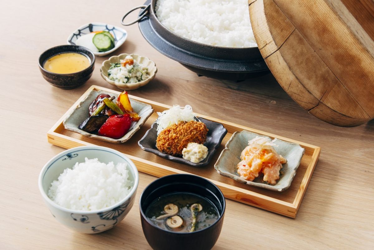 東京・神楽坂の「AKOMEYA TOKYO in la kagū」内にある「AKOMEYA食堂 神楽坂」。こちらは、羽釜炊きのごはんとこだわりの食材や調味料とともに、季節に合わせた定食メニューを味わえると人気の食堂なんです。