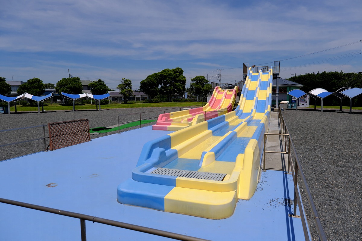 蓮沼ウォーターガーデンの顔ともいえるのが、この「スプラッシュシェイカー」です。最大3人まで乗れるメガスライダーで、4つのスライダーを組み合わせた構造をしています。コース全長は182m。
