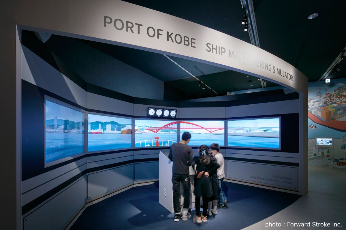 体験型コンテンツが充実しているのがこちらの特徴。神戸港操船シミュレーターでは、神戸港の再現映像の中で船を操縦して、定められたポイントを回り、制限時間内にゴールを目指します。航海士の仕事を体験できるなんて楽しい!