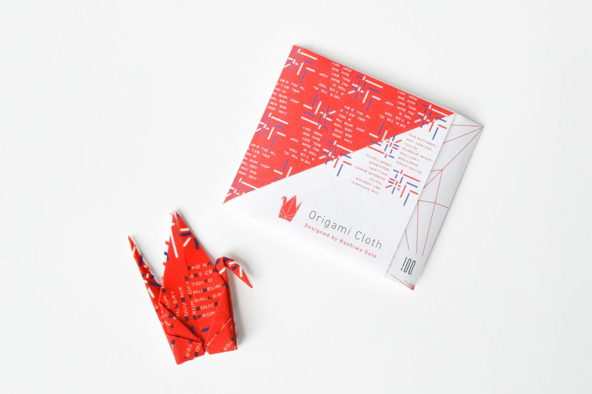 こちらのショップに立ち寄ったらチェックしたいのが、国立新美術館のオリジナル商品。まずご紹介するのは「国立新美術館オリジナル ORIGAMI CLOTH」2365円です。国立新美術館のロゴデザインを担当した佐藤可士和(さとうかしわ)氏の展覧会「佐藤可士和展」が2021年に開催されたのを記念して作られたもの。「佐藤可士和展」のキービジュアルにもなっているアートワークシリーズ「LINES」に合わせた赤、青、白の3色が印象的な、眼鏡レンズや液晶画面などの汚れを拭き取るポケットサイズのクリーナー。ポリエステル素材にプリーツ加工を施しているため、折り紙のように折って楽しむことができます。