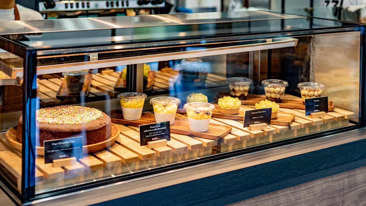 大きなホールケーキをはじめ、季節のフルーツたっぷりのタルト、北海道バニラや宇治抹茶のソフトクリームなどデザートもおいしそうなものばかりです。
