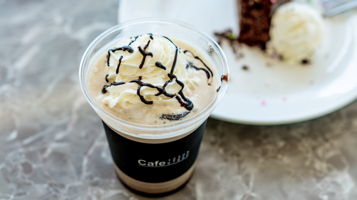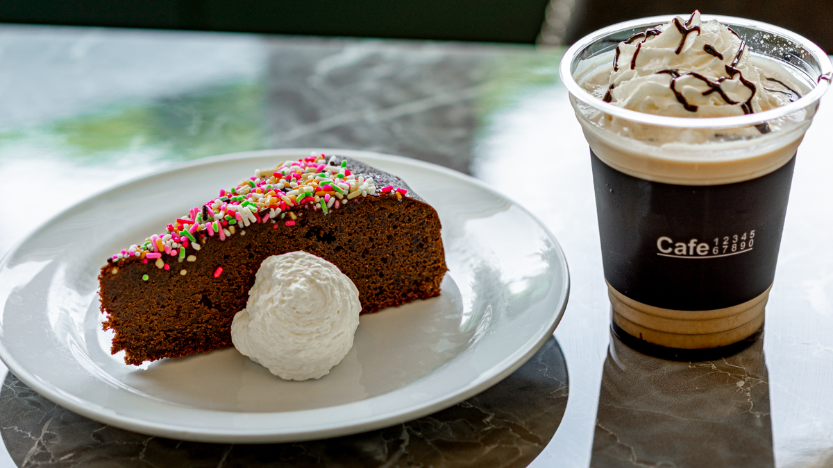 今回はカラフルな見た目に惹かれて、濃厚そうなチョコレート色の生地にチョコスプレーがたっぷりとトッピングされた「カプリ風チョコレートケーキ トルタ カプレーゼ」650円をセレクト。チョコレートソースたっぷりの「アイス カフェモカ」Short450円と合わせて、甘いひとときを堪能しました!
