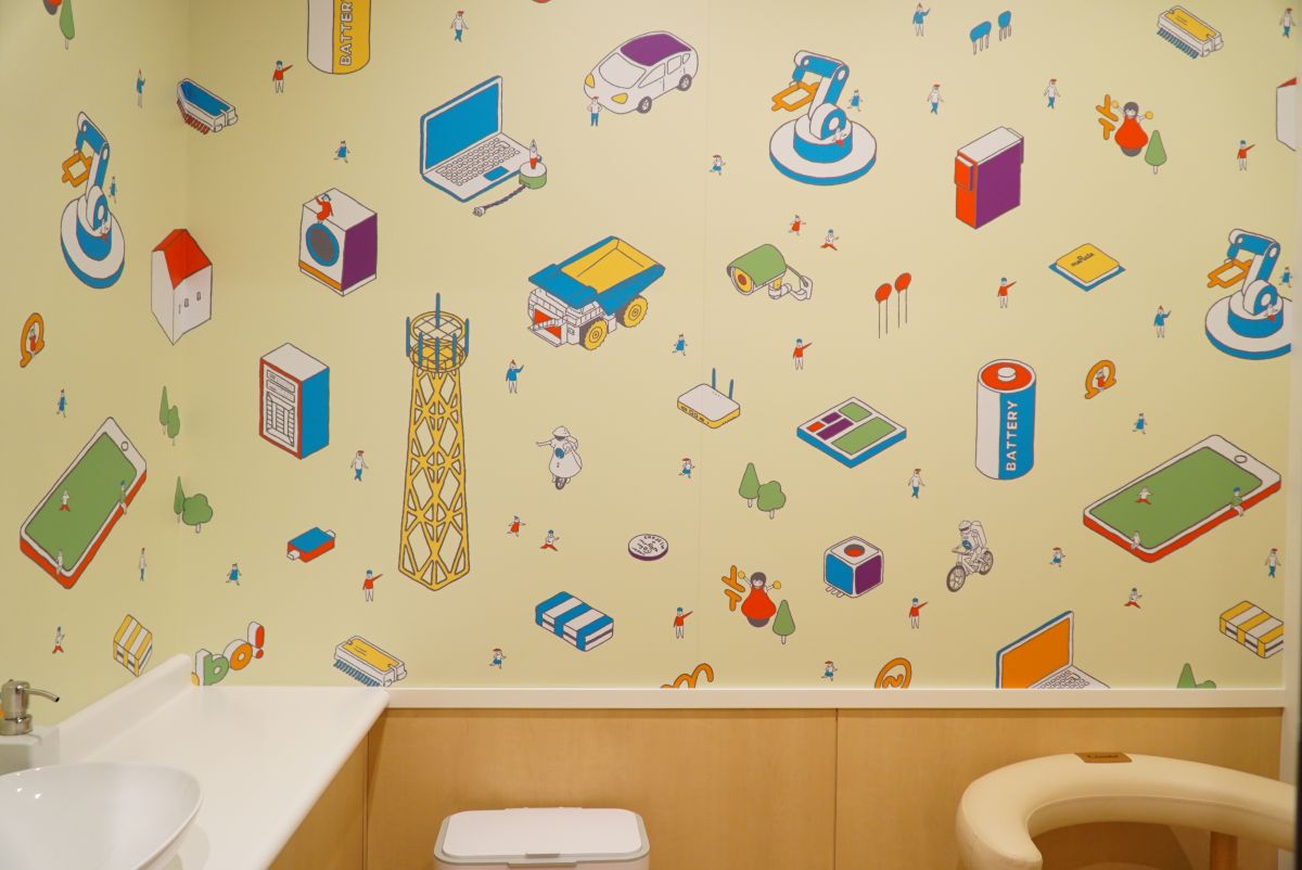 「Mulabo!」は子どもが楽しめる施設とあって、赤ちゃん連れでも安心の設備が充実しています。「シンクゾーン」にはトイレのそばに壁紙がとってもかわいらしい授乳室も完備。オムツの交換台もあります。