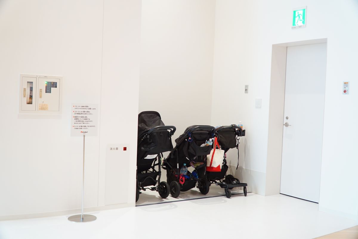 また「シンボルゾーン」にはベビーカーを預けられるスペースがあり、1階には無料のロッカーもあるので、大きな荷物などは預けておくと便利です。