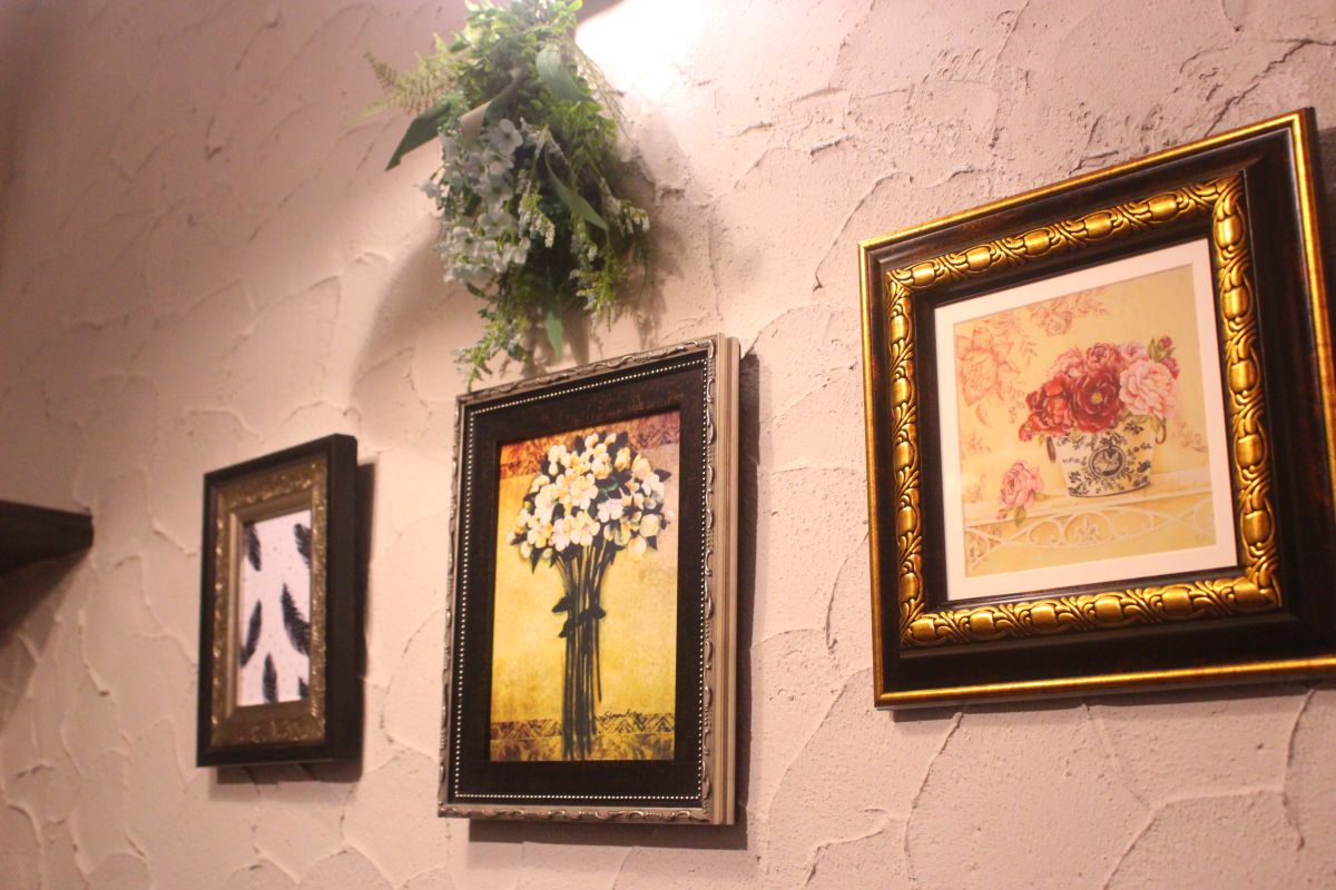 壁にはアート作品がいくつも飾られ、空間づくりにこだわりを感じます。