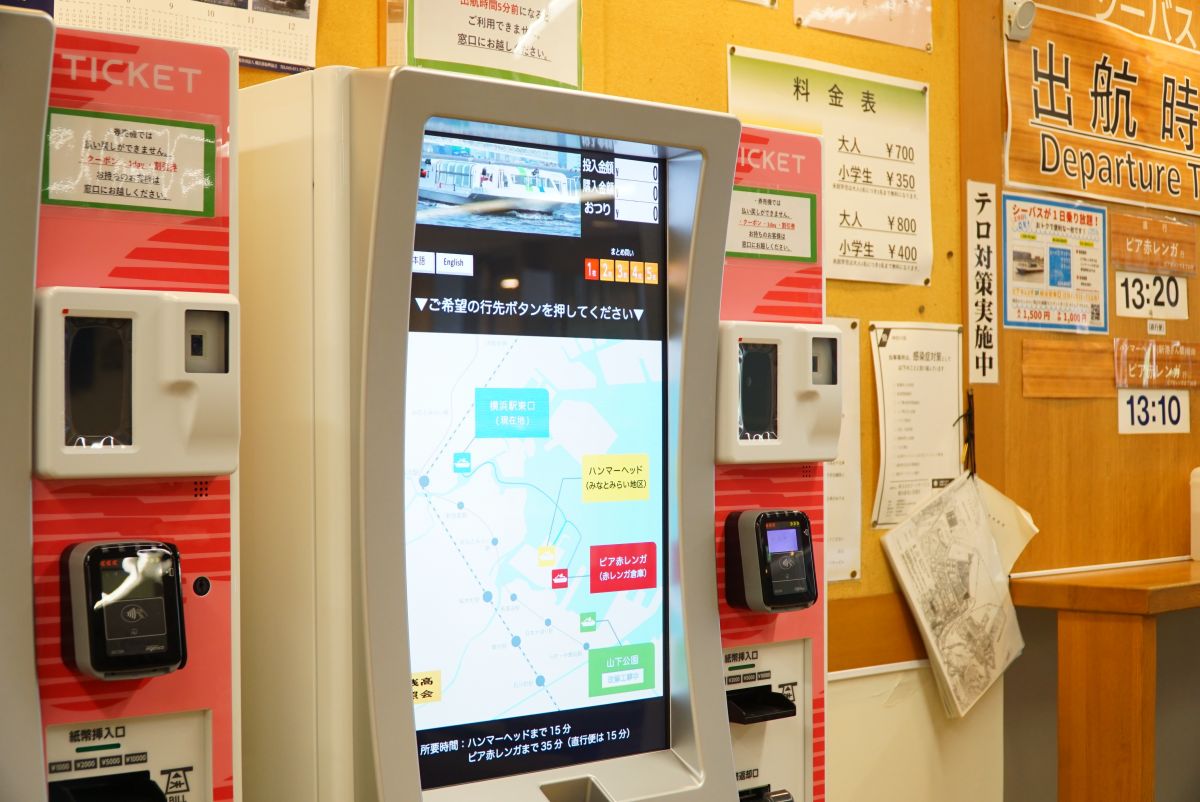 料金は「横浜駅東口」〜「新港ふ頭さん橋」700円(小学生350円)、「新港ふ頭さん橋」〜「ピア赤レンガ」500円(小学生250円)、「横浜駅東口」〜「ピア赤レンガ」800円(小学生400円)。支払いは現金か交通系ICカードが使用可能です。
