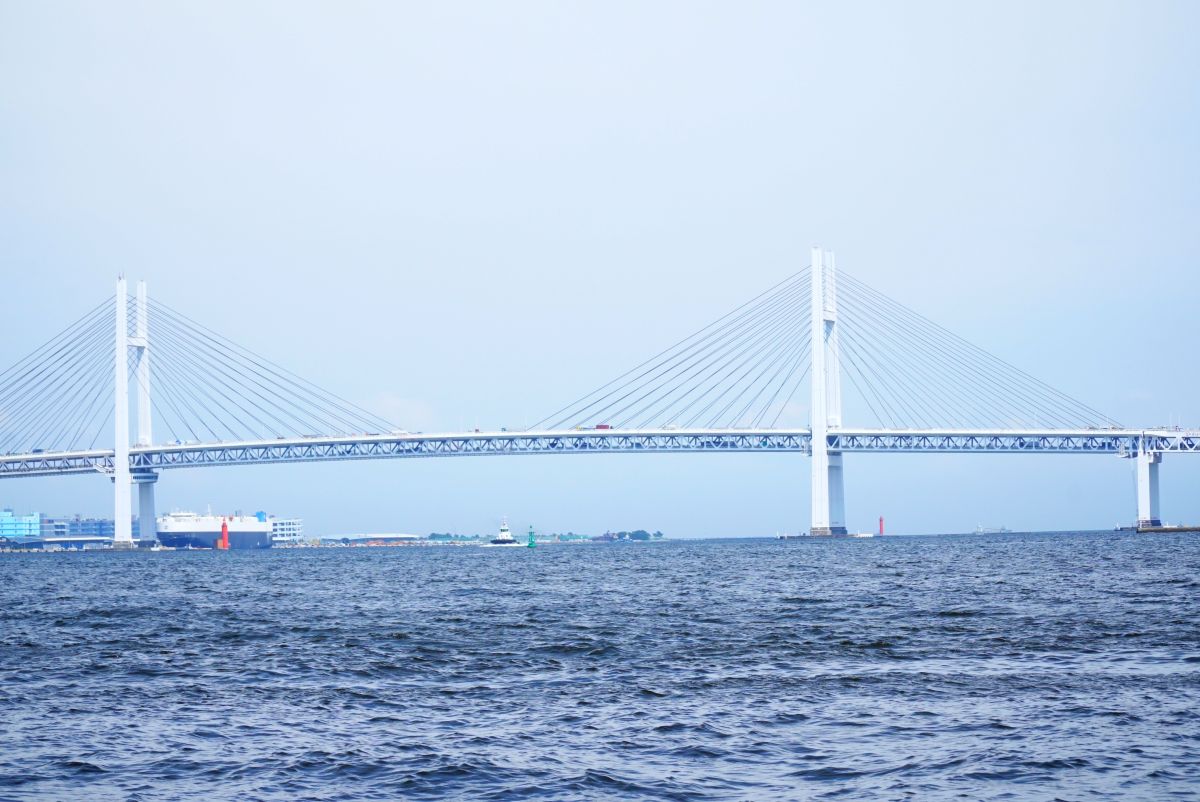 しばらくすると横浜港のランドマークともいえる横浜ベイブリッジが見えてきました。まさに横浜ならではの景色。