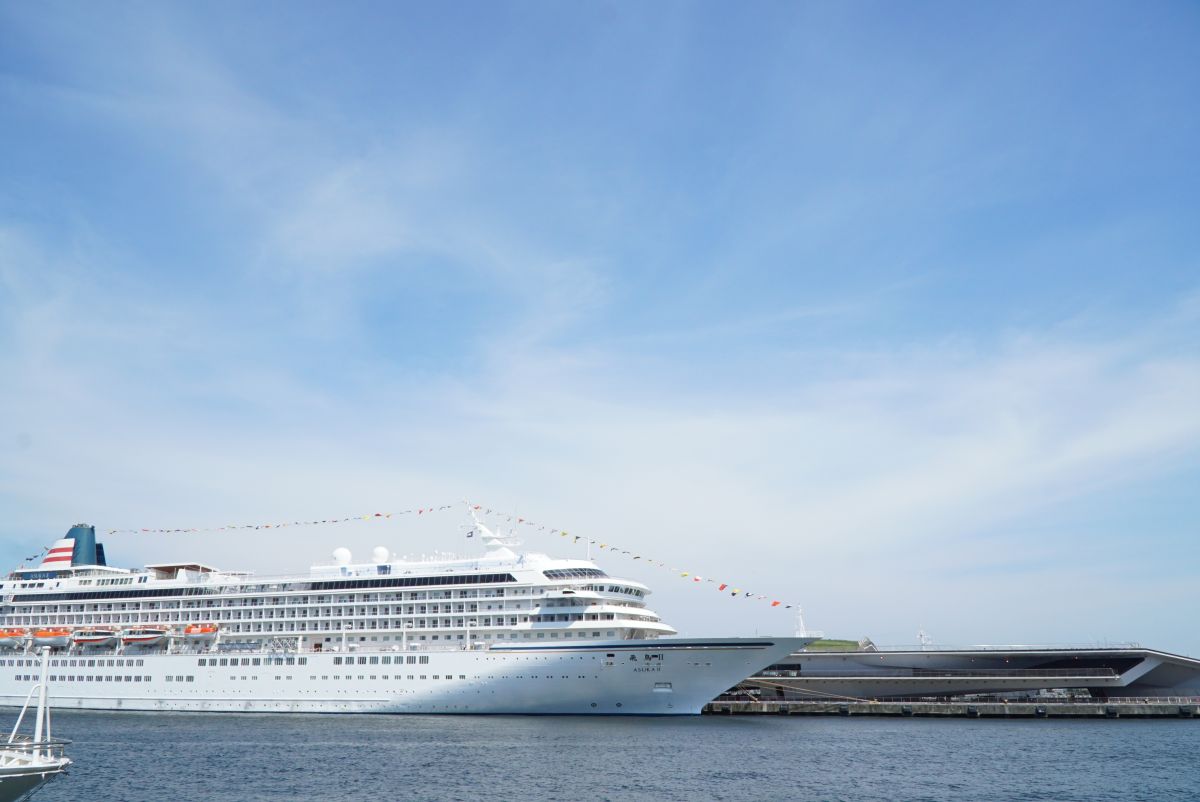 景色を眺めているとあっという間です。横浜港大さん橋に停泊する巨大旅客船は大迫力!