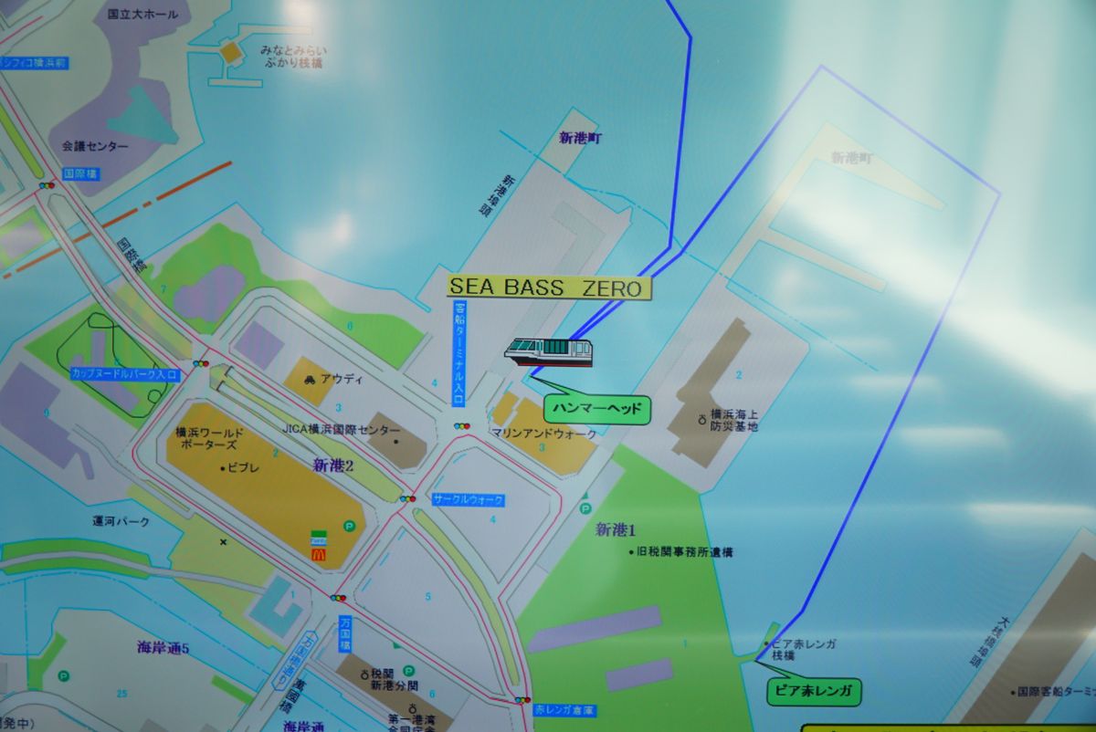 「シーバス」の英語表記のつづりは“SEA BASS”。“SEA BUS”ではありません。これは魚のスズキ(BASS)が横浜駅東口の河口から山下公園の海を行き来していることが由来なのだそう。