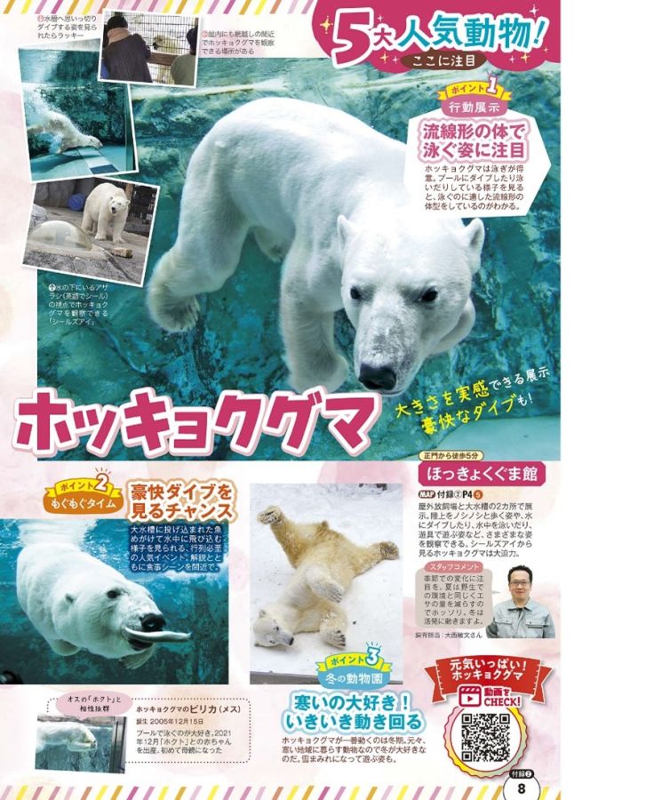 ★誌面のQRコードを読み取ると、動画も楽しる特別企画も!大自然の絶景や、旭山動物園の動物たちのキュートな仕草を動画で楽しめます。