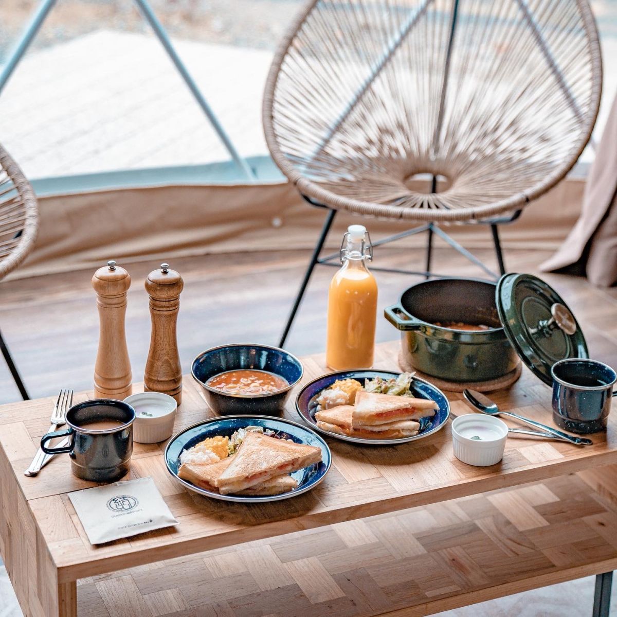 朝食では、ホットサンドを作って食べることができます。テントの大きな窓から差し込む光を浴びて、気持ちのいい朝を迎えてみてはいかが?