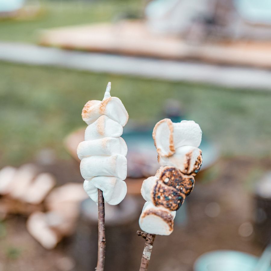 薪割りを頑張った後は木の枝にマシュマロを刺して、焼きマシュマロでご褒美タイム♪