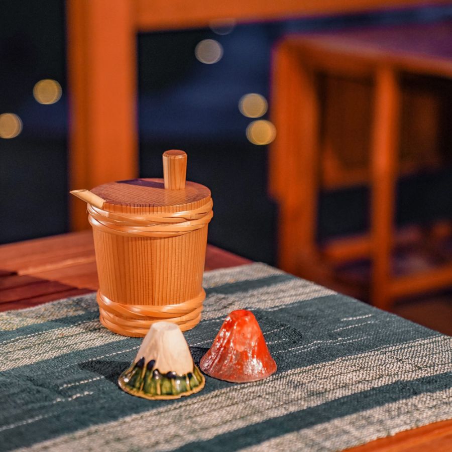 ここでは富士宮の地酒がいただけます。地元の作家さんが作った、富士山をデザインしたおちょこがとってもかわいい♪