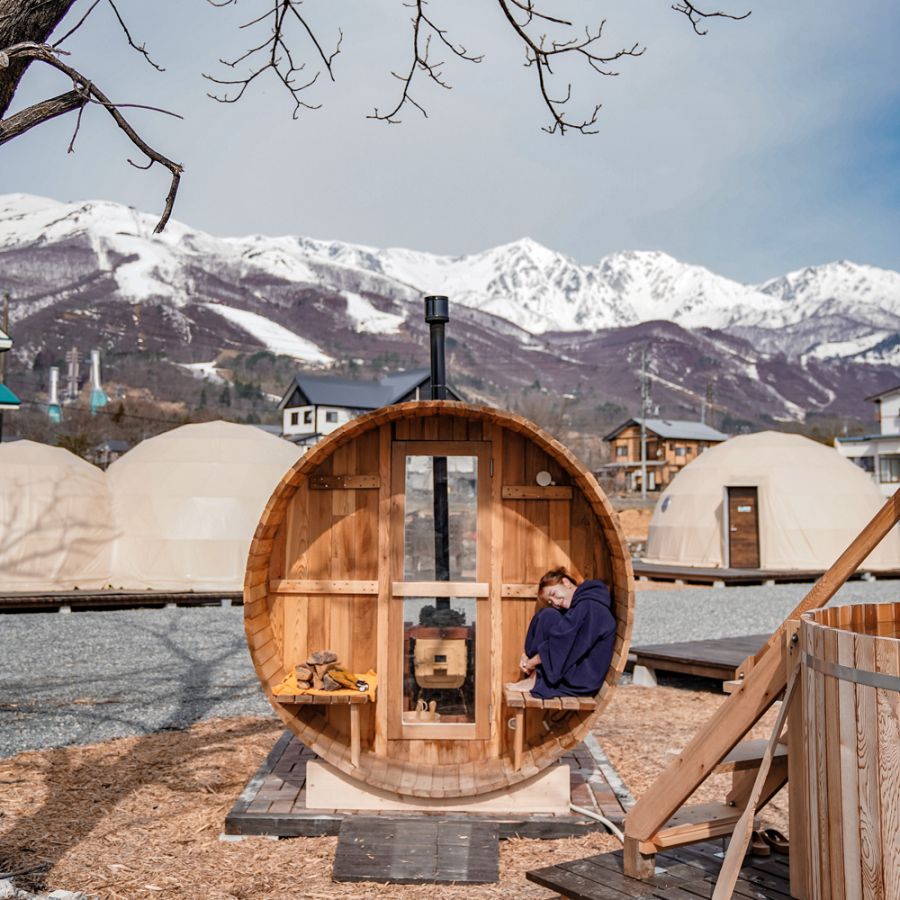 長野県北安曇郡白馬村の大自然の中にある「FromP HAKUBA(フロムピー ハクバ)」は、本格フィンランド式サウナが楽しめるグランピング施設。