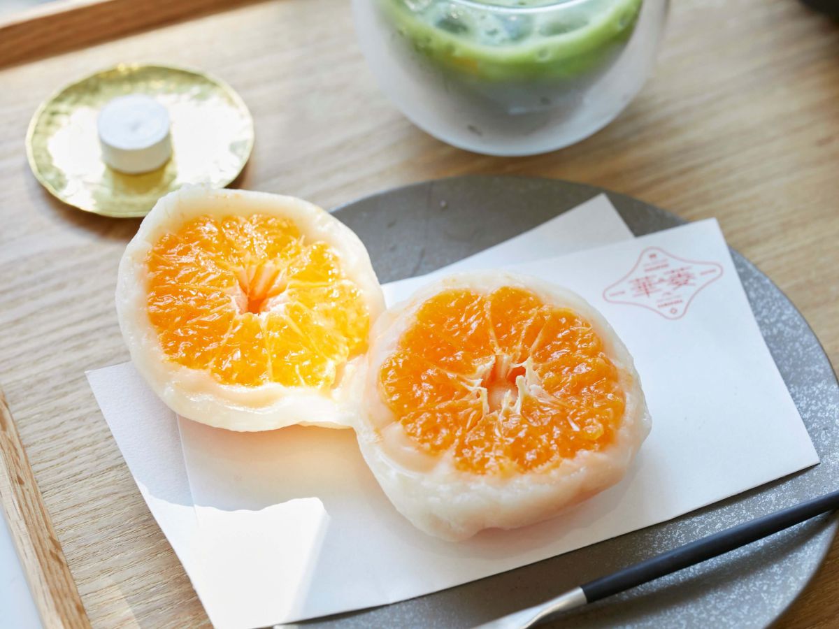 さっそく一番人気の「蜜柑大福」をセレクト!イートインの場合は、フルーツ大福とドリンクのセットオーダーが必須です。