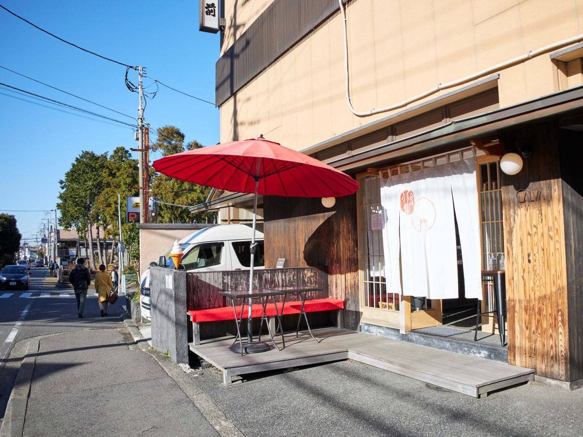 お店まではJR北鎌倉駅西口から歩いて2分ほど。円覚寺総門前にたたずむ左右対称の池・白鷺池(びゃくろち)を左手に眺めながら、さらに数メートル進むと到着です。